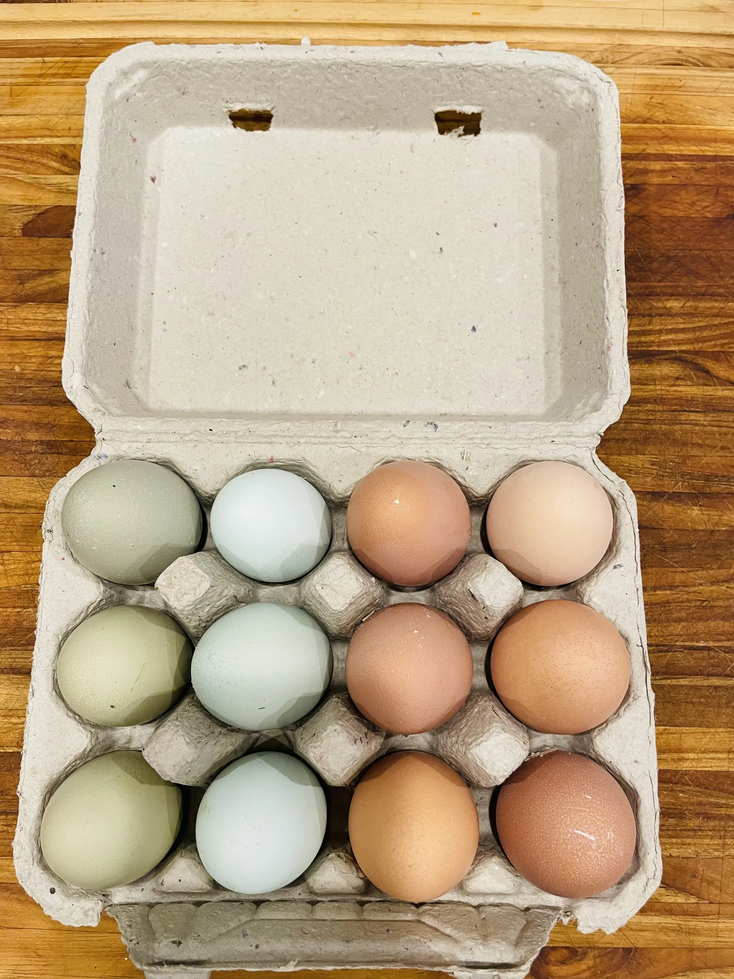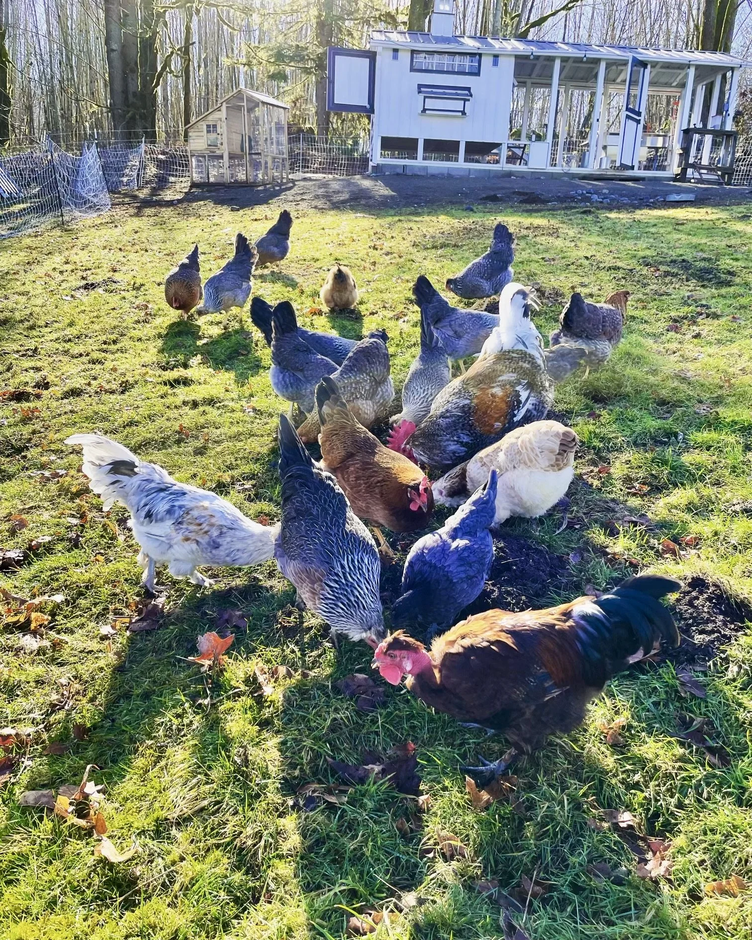 We work on a 20-acre farm in Carnation, WA where we raise all of our happy hens, fruit, vegetables, and dairy that are part of our farm. Our eggs are pasture born and raised, they eat bugs, grass, worms, we often supplement that with fruit that grows wild on our land such as blueberries and blackberries.